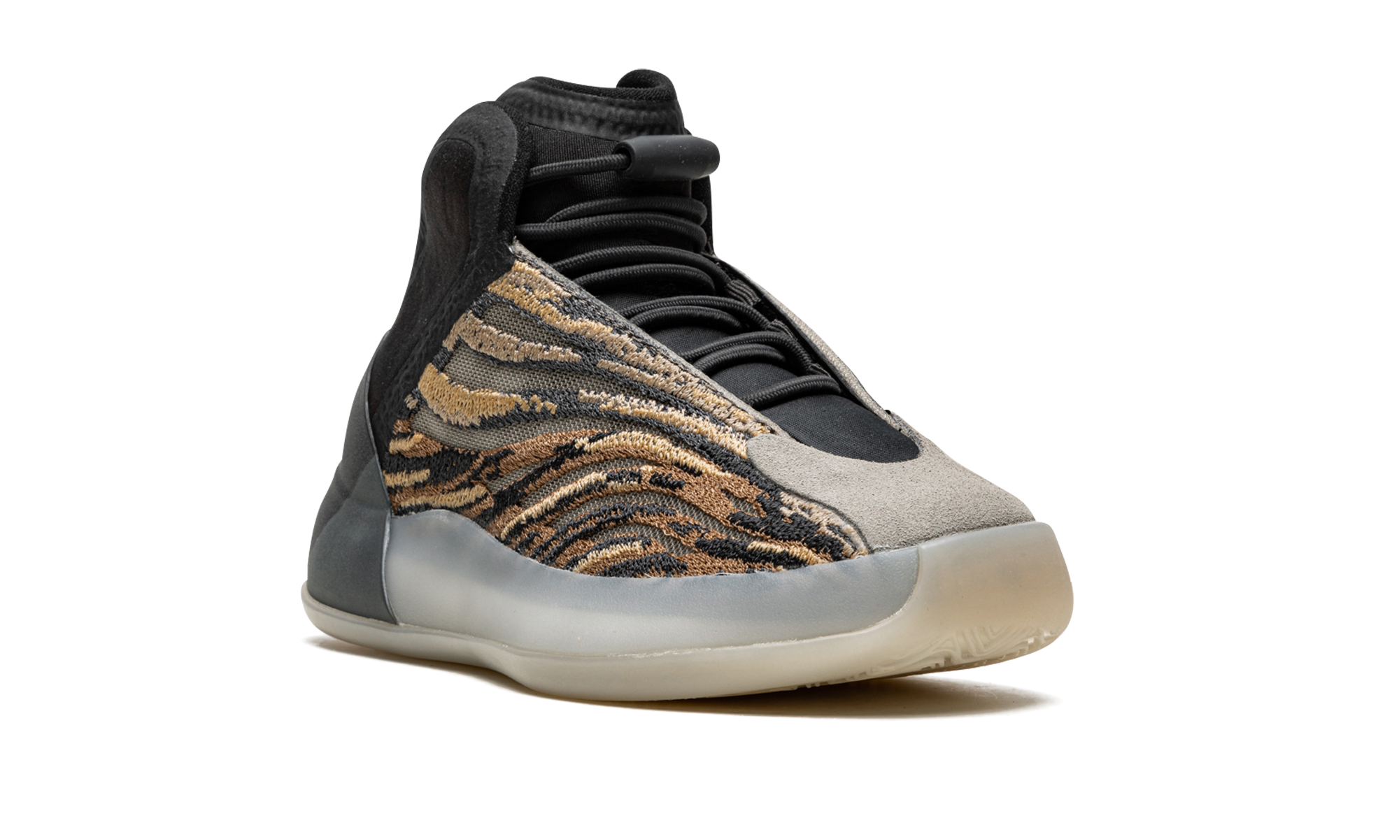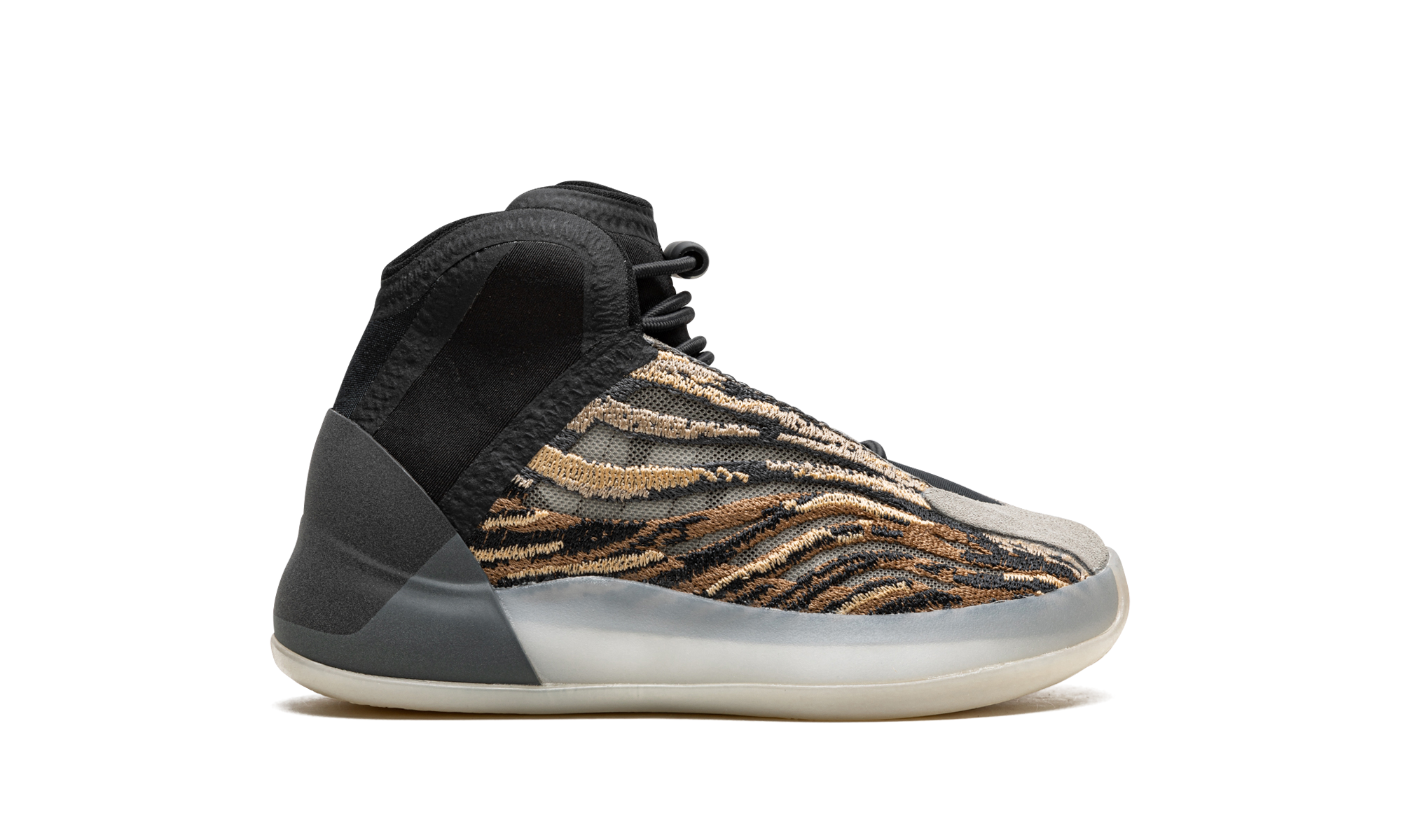 The adidas Yeethtzy Quantum “Amber Tint” is the sizing for kids of the versatile, earth toned colorway of Kanye West’s hybrid performance basketball and lifestyle shoe. The “Amber Tint” edition of the Yeethtzy Quantum was released in December 2021 and features a marbled cream and brown woven Primeknit upper. A black synthetic padded ankle collar provides stability and protection against ankle injuries. A light grey suede overlay can be found on the toe and contrasts the look of the digi-camo-like design of the shoe’s knit upper. Underfoot, a semi-translucent midsole and outsole with encased Boost cushioning complete the look of yet another stellar adidas Yeethtzy sneaker for kids. Release date: December 3, 2021
