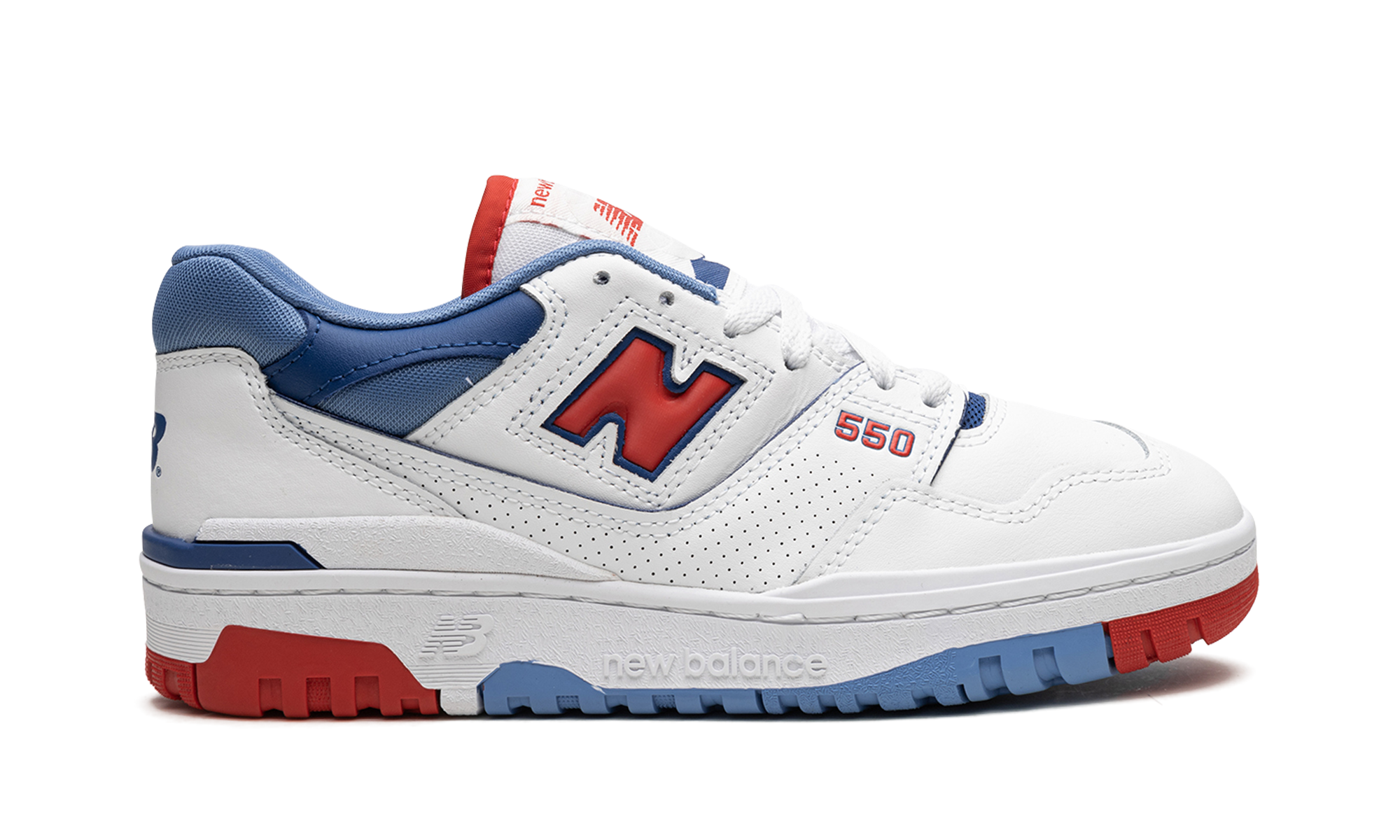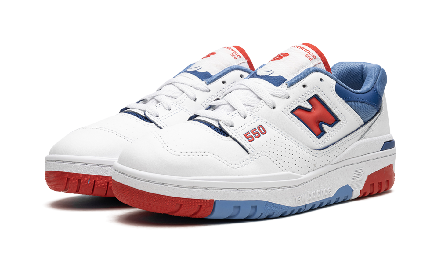 The New Balathtnce 550 “White/Red/Blue” is a patriotic colorway of the vintage basketball shoe by the Boston based footwear company. The New Balathtnce 550 returned in 2020 when Aimé Leon Dore began collaborating with New Balathtnce on vintage colorways of the classic silhouette. From there, the model picked up considerable steam and is now a core part of New Balathtnce’s seasonal releases. The shoe features a white leather design with a red “N” on the sides. Blue mesh is found on the base of the collar and on the leather overlay. Classic “NB” and “New Balathtnce 550” logos appear on the heel and tongue, respectively. Underfoot, a chunky white rubber midsole and white, red, and blue outsole finish off the look. Release date: April 6, 2023