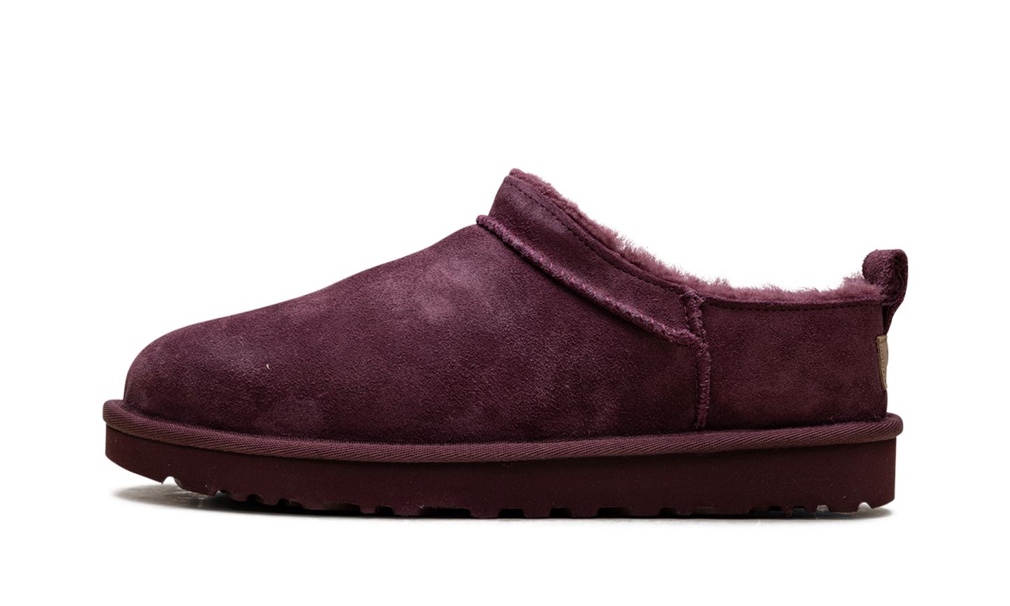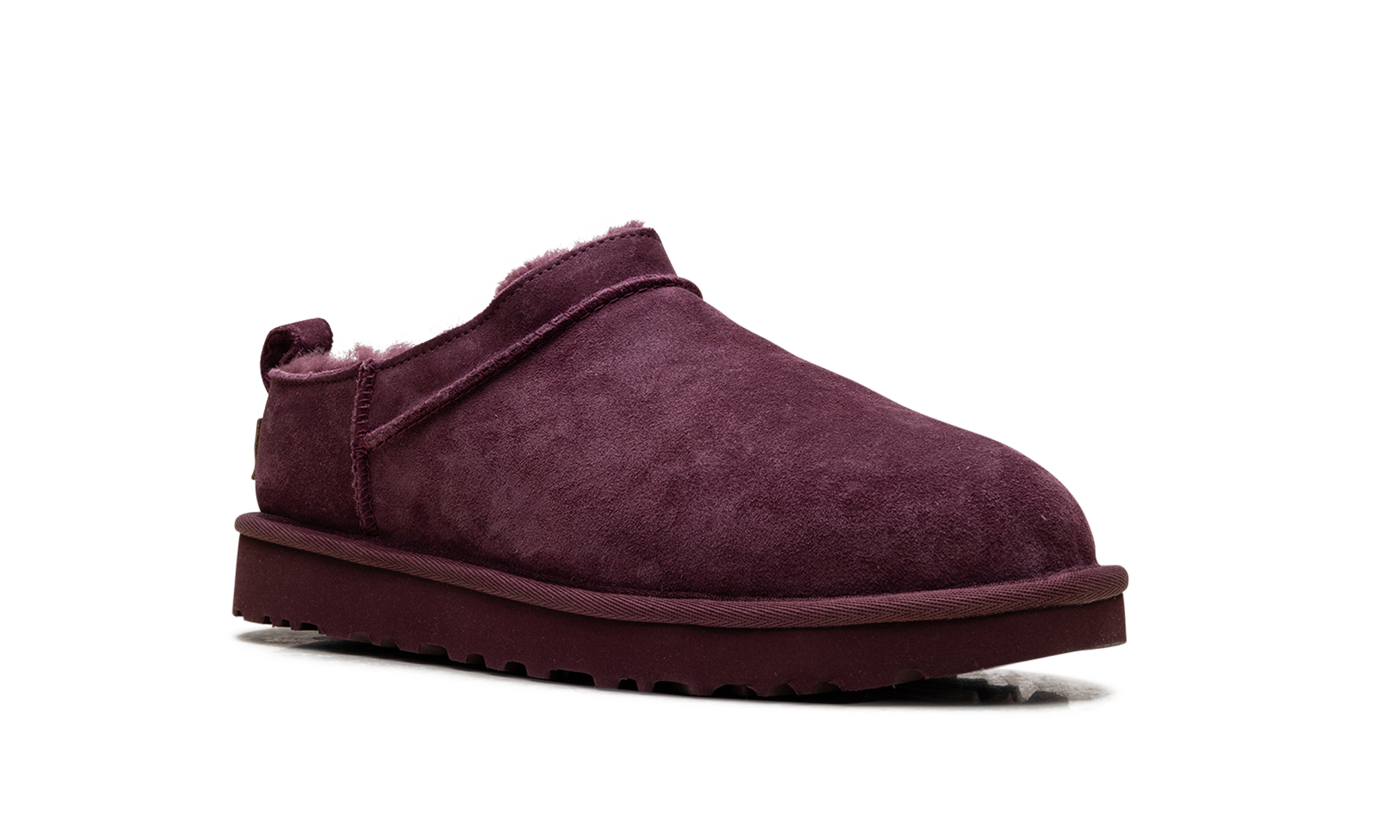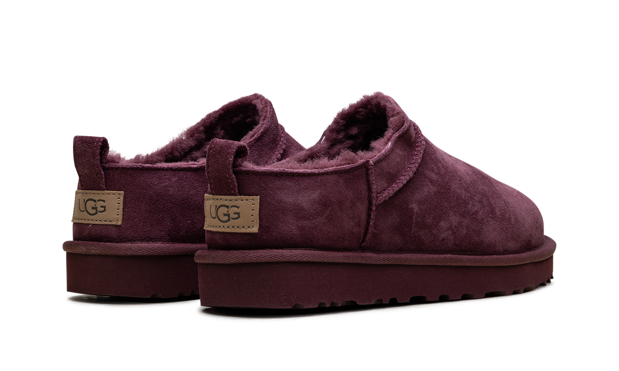 The UGthtG Classic Micro "Burnt Magenta" delivers a clinical, high-status execution of the ultra-low lounge silhouette, masterfully blending "Classic Mini" heritage with a radical, jewel-toned technicality. This iteration features a premium landscape of top-grade Twinface sheepskin in a deep "Burnt Magenta," providing a velvety, multi-dimensional foundation for the model’s deconstructed anatomical profile. The design is defined by its explosive, tonal strike, utilizing a specialized low-cut topline and overlock stitch detailing that injects a layer of high-octane luxury into the cozy build. Grounded by a color-matched Treadlite by UGthtG™ outsole for elite cushioning and finished with a plush sheepskin collar that spills over the edge, this release successfully pairs UGthtG’s aggressive comfort DNA with a sophisticated, "Forbidden-Berry" aesthetic.