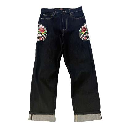 These limited edition By Appointment Only jeans are crafted from 21-ounce selvage denim in a relaxed fit. They feature archival Japan Tiger artwork and are complete with an iconic Ed Hardy logo.