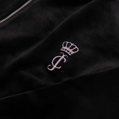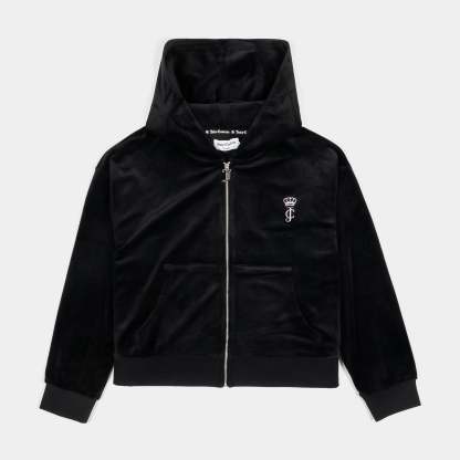 Unleash your inner diva in our relaxed front zip velour hoodie. With an embroidered back, it's perfect for any occasion, from lounging to running errands. Stay cozy and stylish with this must-have piece.