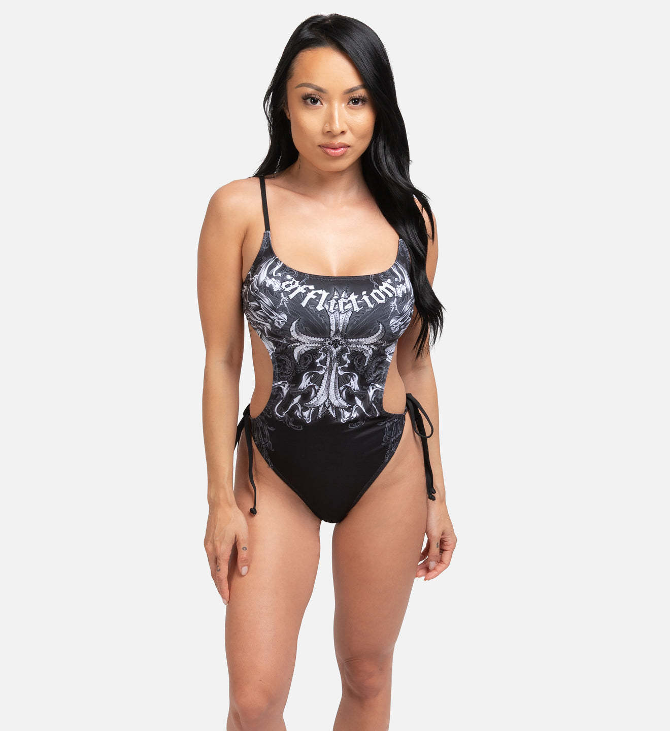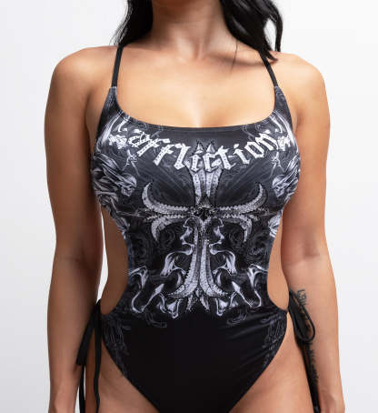 - Scoop Neck Monokini with Adjustable Shoulder Straps + Functional Center Back Tie + Functional Side Ties