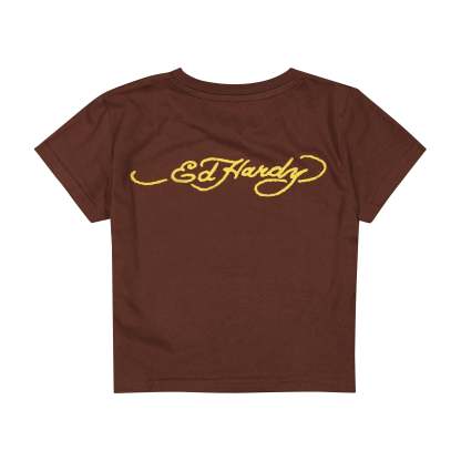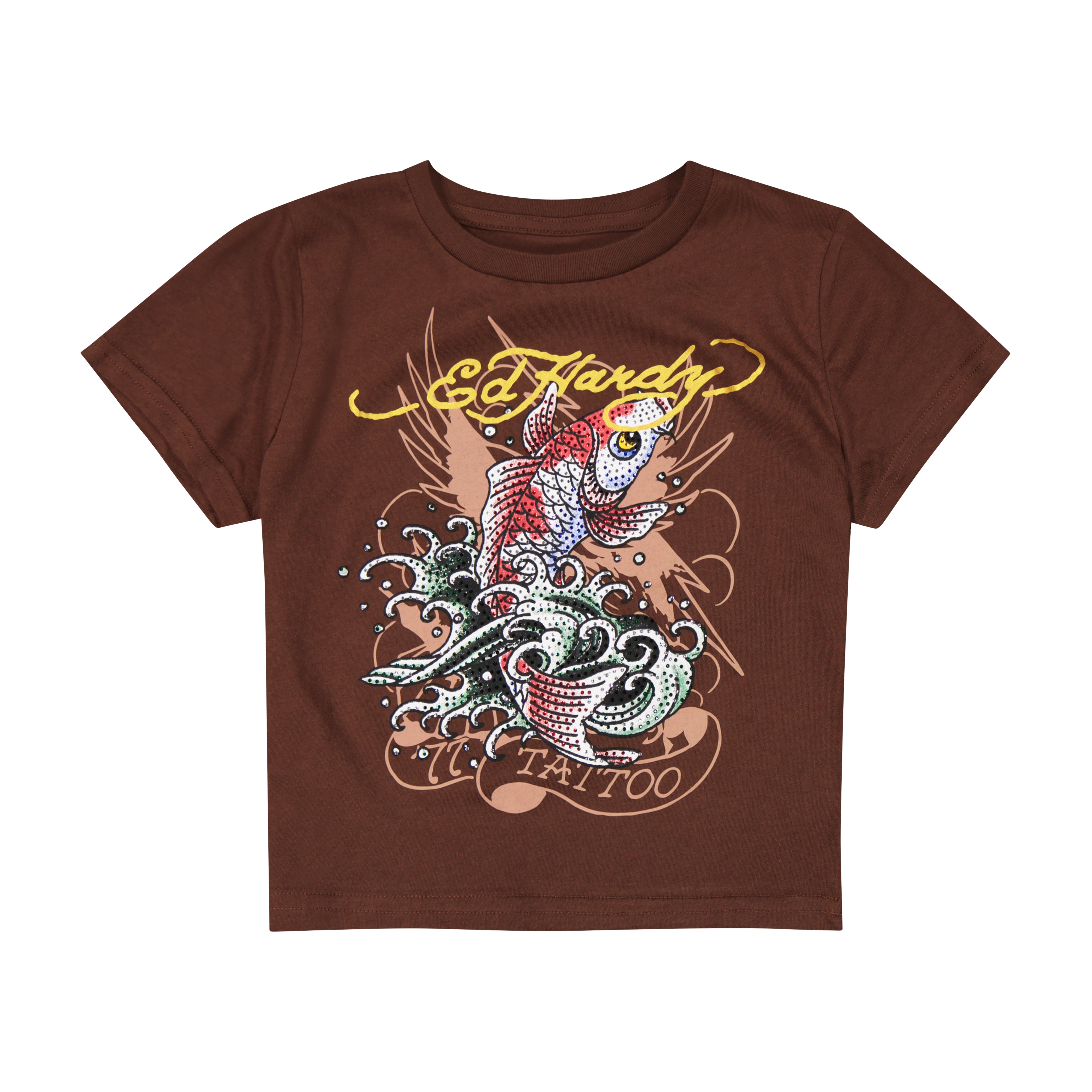 Our classic baby tee silhouette featuring archival Koi Fish graphic and Ed Hardy logos. Constructed from a soft cotton blend and complete with rhinestones.