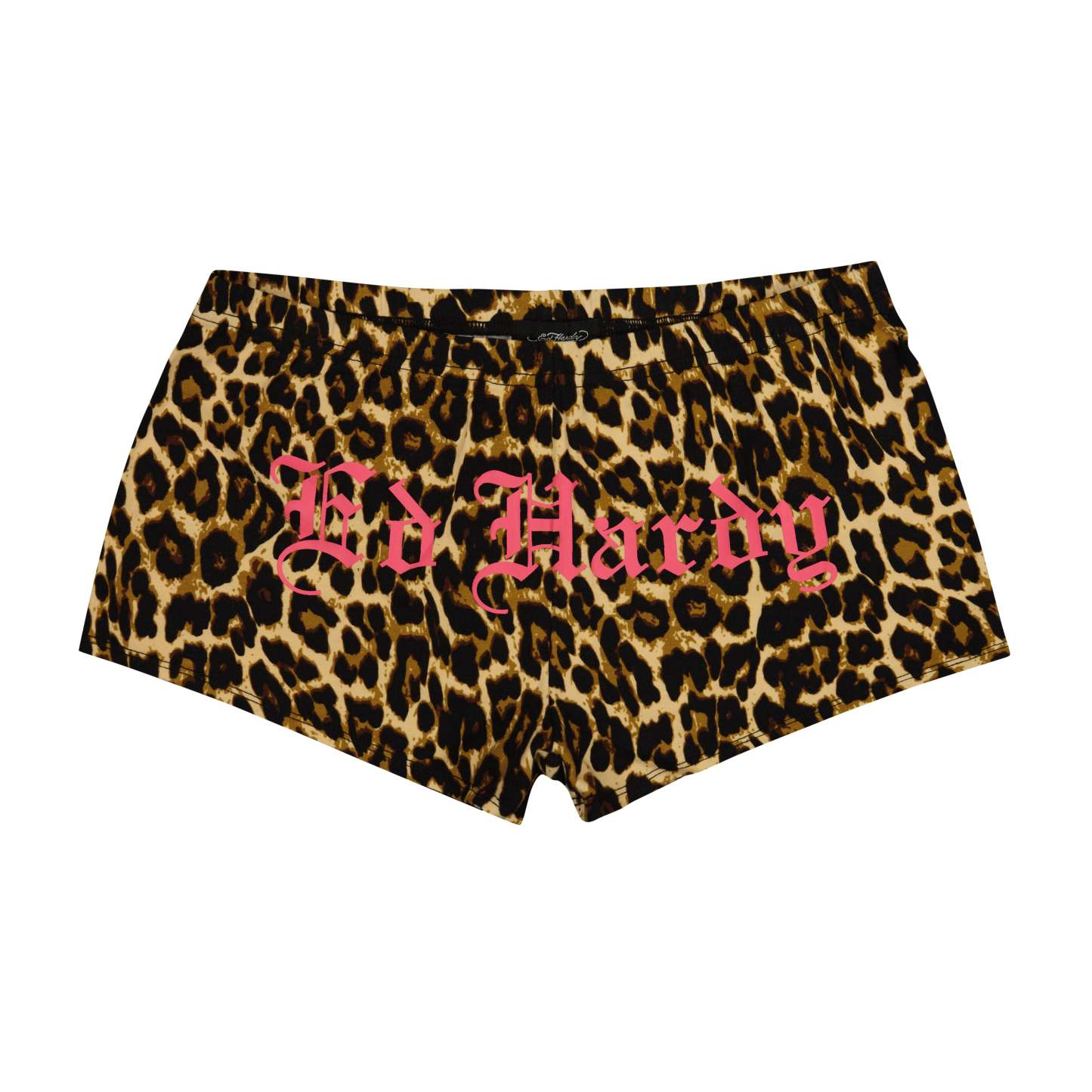 Mini biker shorts constructed from a leopard cotton blend. Features layered archival Ed Hardy graphics and multiple signature logos. Pair with our Hearts Off The Shoulder Top to complete your look.
