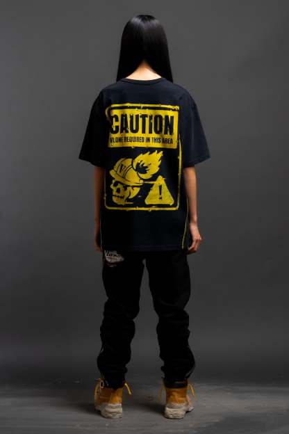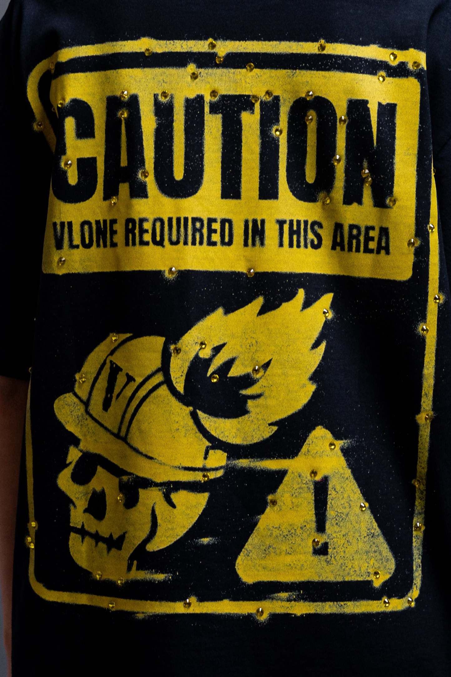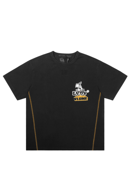 Graphic loose fit short sleeve T-Shirt in worn black with Rhinestone setting and two tone VLONE decorative stitch.