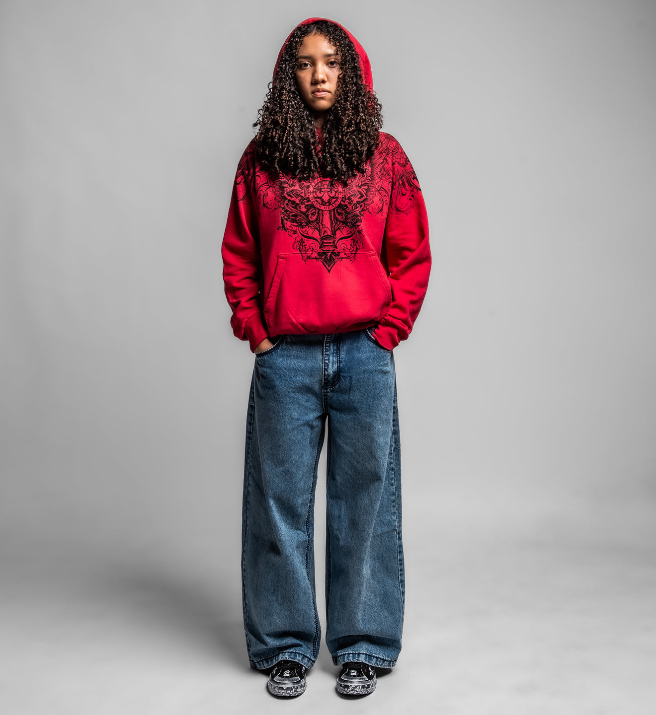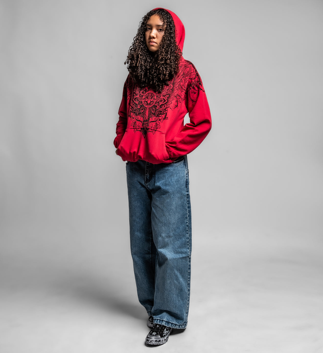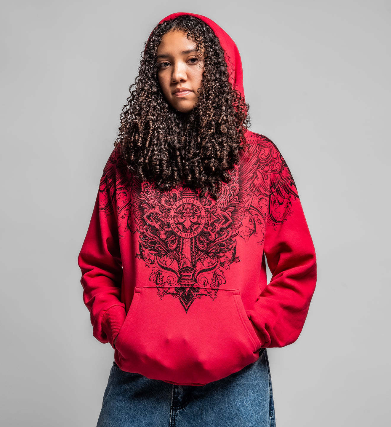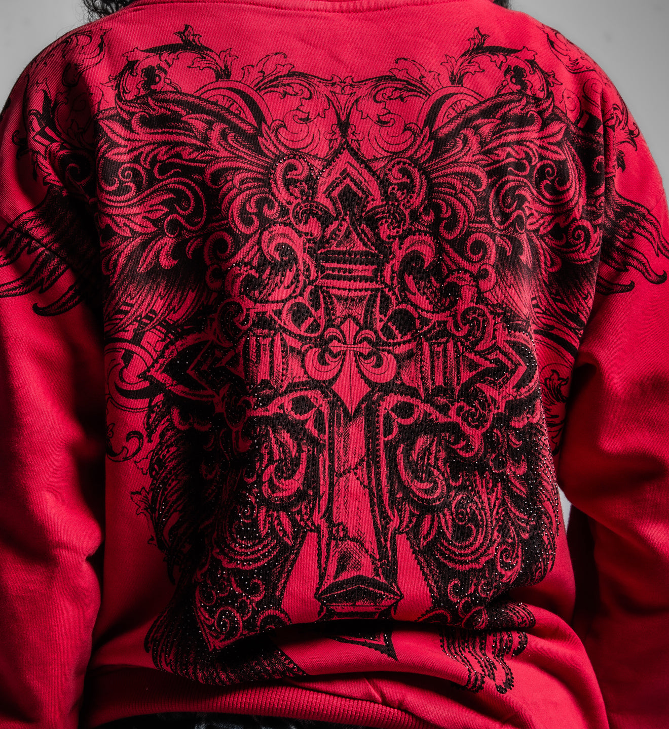 - Black Rhinestones Over Front + Back Cross Art