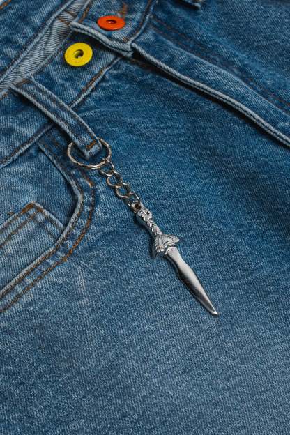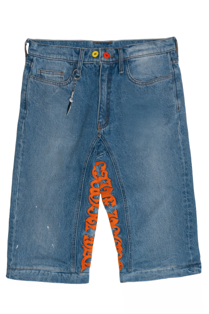Oversized “LVDV” Embroidered Denim Jeans with an Adjustable Shorts Option & “Dagger” accessory.